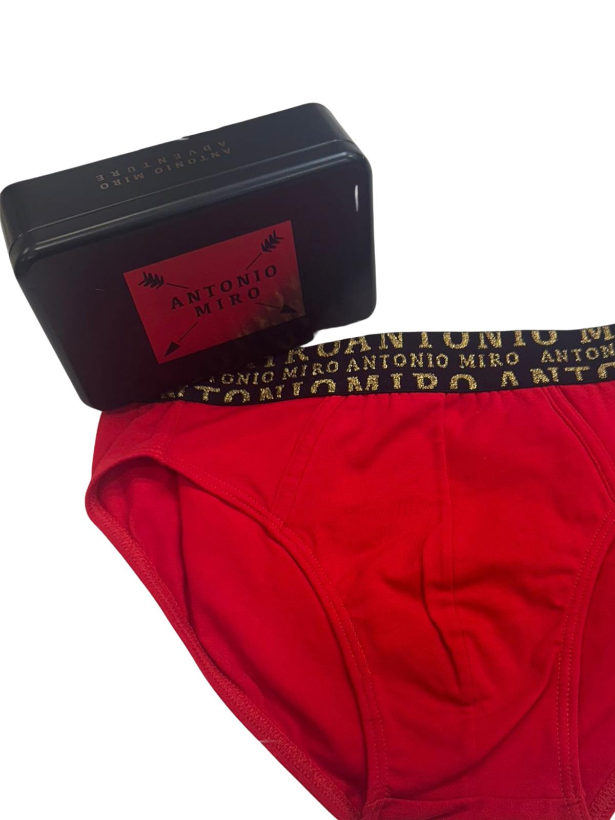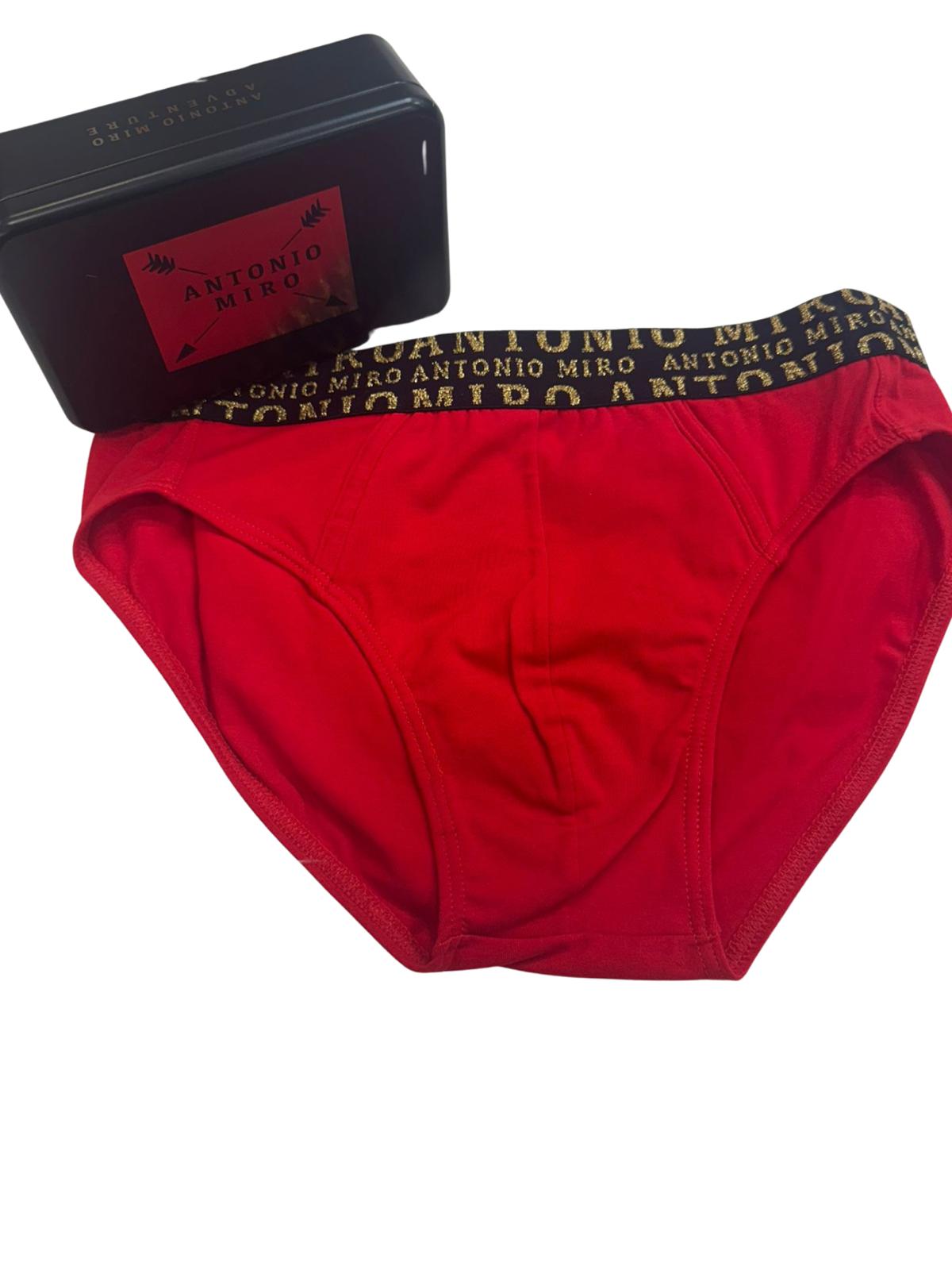 * Calzoncillo/Slip para hombre de algodón elástico, de color rojo con detalles dorados