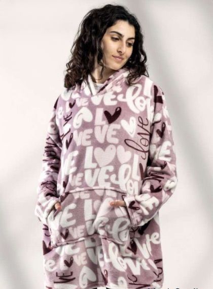 La Bata Manta Coralina Letras de Lin es perfecta para mantenerse abrigada con estilo durante los días fríos. Confeccionada en coralina aterciopelada, ofrece una sensación cálida y envolvente. Su diseño tipo hoodie oversize incluye capucha, mangas largas y un práctico bolsillo canguro para mayor comodidad.