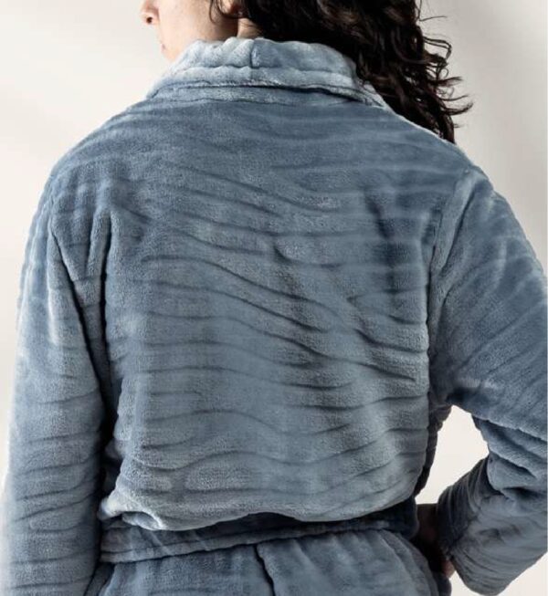 La bata Lin en color azul ofrece calidez y comodidad ideales para el hogar. Confeccionada en 100% poliéster, destaca por su textura suave, ligera y envolvente. Perfecta para disfrutar de confort y estilo en los días fríos de otoño e invierno.