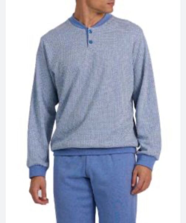 Este es un pijama largo de invierno para hombre de la marca Belty. Está diseñado para ofrecer calidez y comodidad durante las noches frías.