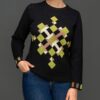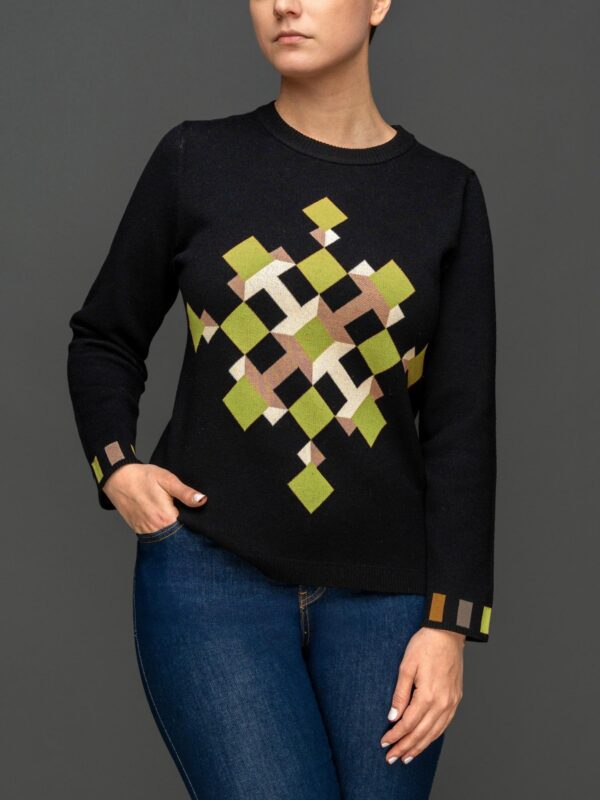 El Jersey Riosa resalta por su diseño geométrico en tonos verdes, beige y marrones sobre base negra, creando un estilo llamativo y moderno. Confeccionado en 50% viscosa, 30% poliamida y 20% poliéster, es super suave, elástico y muy cómodo para el día a día.