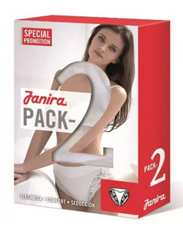 Braga Esencial Pack 2 de Janira. Confeccionadas en algodón que incorpora el tratamiento ‘Super-Cotton’ que aporta al tejido una mayor uniformidad y fineza. Pensado para satisfacer las necesidades de la mujer de hoy, que busca las ventajas de un tejido natural sin renunciar a las aportaciones tecnológicas. Ideal para pieles sensibles.