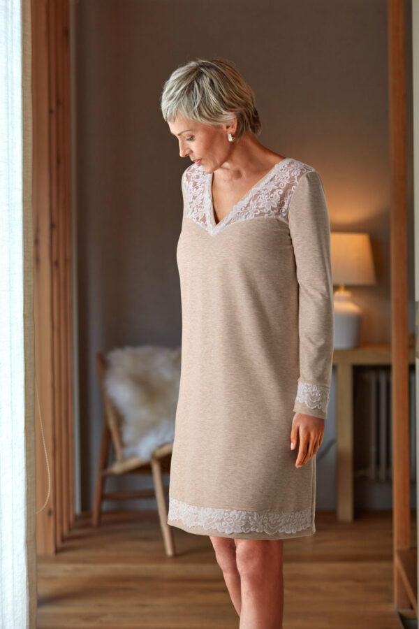 Camisón de mujer de manga larga (M/L) perteneciente a la serie “Angie” de Janira. Presenta un diseño cuidado y elegante, ideal para descanso con estilo.