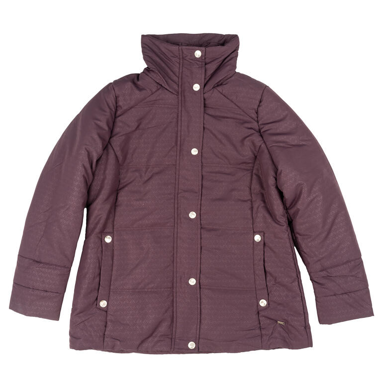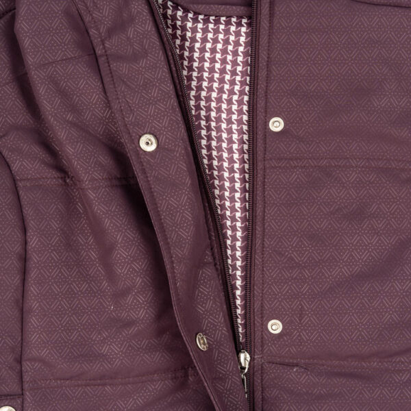 Parka MCM en color vino, con textura de rombos discretos. Tejido técnico ligero, corte recto y cierre con cremallera oculta. Incluye bolsillos laterales y forro interior suave. Prenda cómoda, elegante y funcional para uso diario.